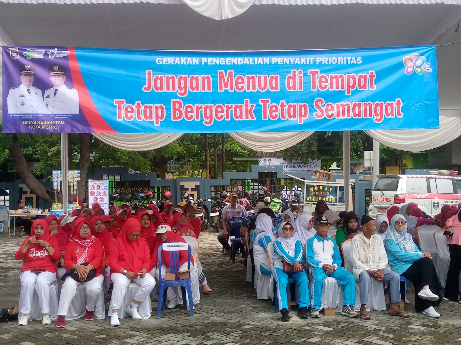 Metro — Dinas Kesehatan Kota Metro turun langsung mengajak masyarakat, khususnya kelompok lanjut usia (lansia) untuk mencegah dan mengendalikan penyakit tidak menular. Kegiatan yang berlangsung di halaman Wismahaji Al-Khairiyah Kota Metro. Selasa, (09/12/2025).